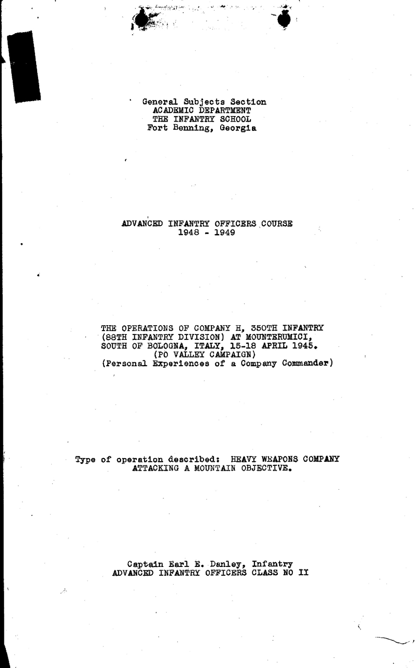 Operations of Company H At Mounte Rumici, South of Bologna, Italy 15 - 18 April 1945 Po Valley Campaign